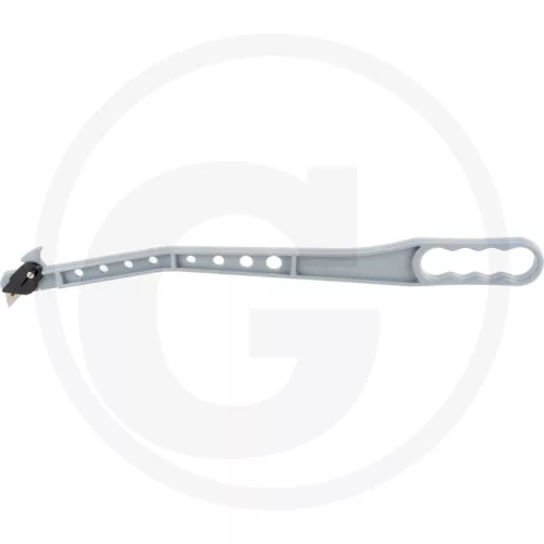 Kivitel: A GRANIT bálavágó kés egy olyan innovatív eszköz, amelyet széna-, siló- és szalmabálák, big bag zsákok és körbálák vágására használnak. A 730 mm hosszú műanyag karra egy éles trapéz alakú pengét rögzítettek, amely gyors és tiszta vágást biztosít, és könnyen cserélhető. A felhasználó védelme érdekében a penge két ujjal könnyen összecsukható. Vágáskor 33°-os szögben kell álljon a húzási irányhoz képest. A karra szerelt horog a korábban felhasított fólia lehúzására szolgál.
