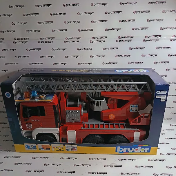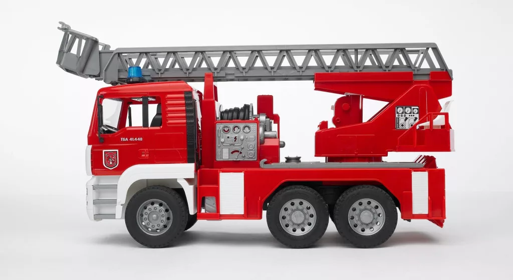 Egy megfelelő tűzoltóautó biztosan nem hiányozhat egyetlen fiús játékeszközből sem! A többi Bruder modellhez hasonlóan ez is lenyűgözi a precíz kidolgozását és a szórakoztató funkciókat, amelyek minden kis tűzoltót megszeretnek vele. A modell tökéletesen utánozza az eredeti MAN tűzoltóautót, és nem hiányzik belőle sok valódi elem, mint például a visszahúzható létra mentőtartállyal, egy teljesen működőképes vízpermetező és egy tömlődob. Az autó maximális stabilitását praktikus tartóblokkok biztosítják.