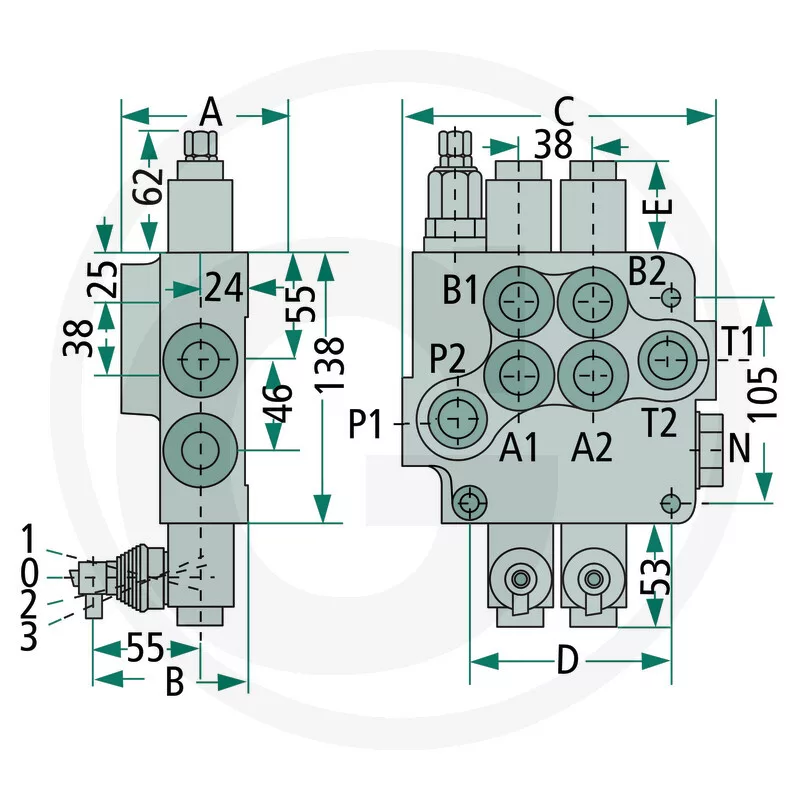 87000945 GRANIT Szelep Z80 2 kettős működ. (kar. csat.)